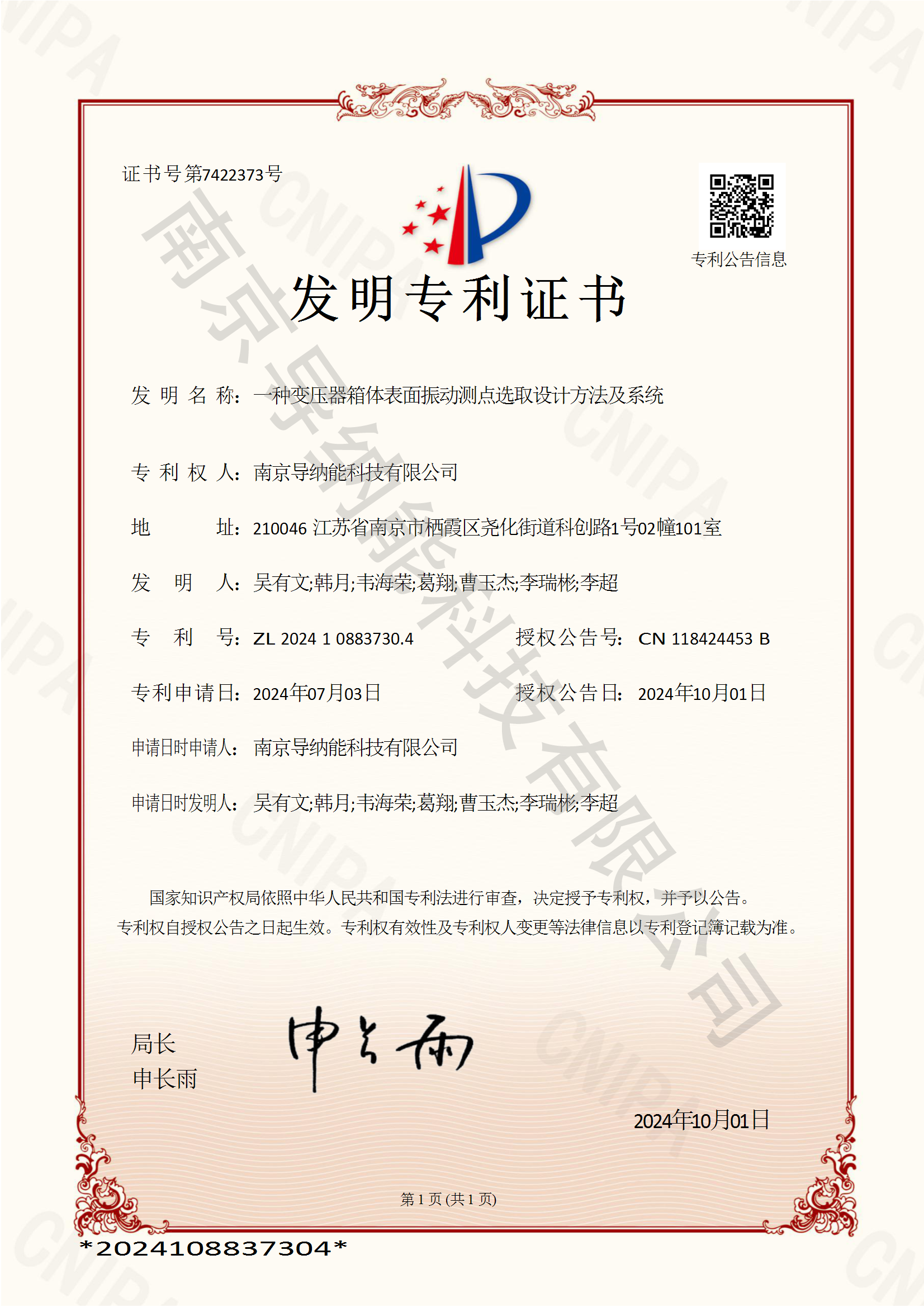 发明专利-变压器箱体表面振动测点选取设计方法及系统